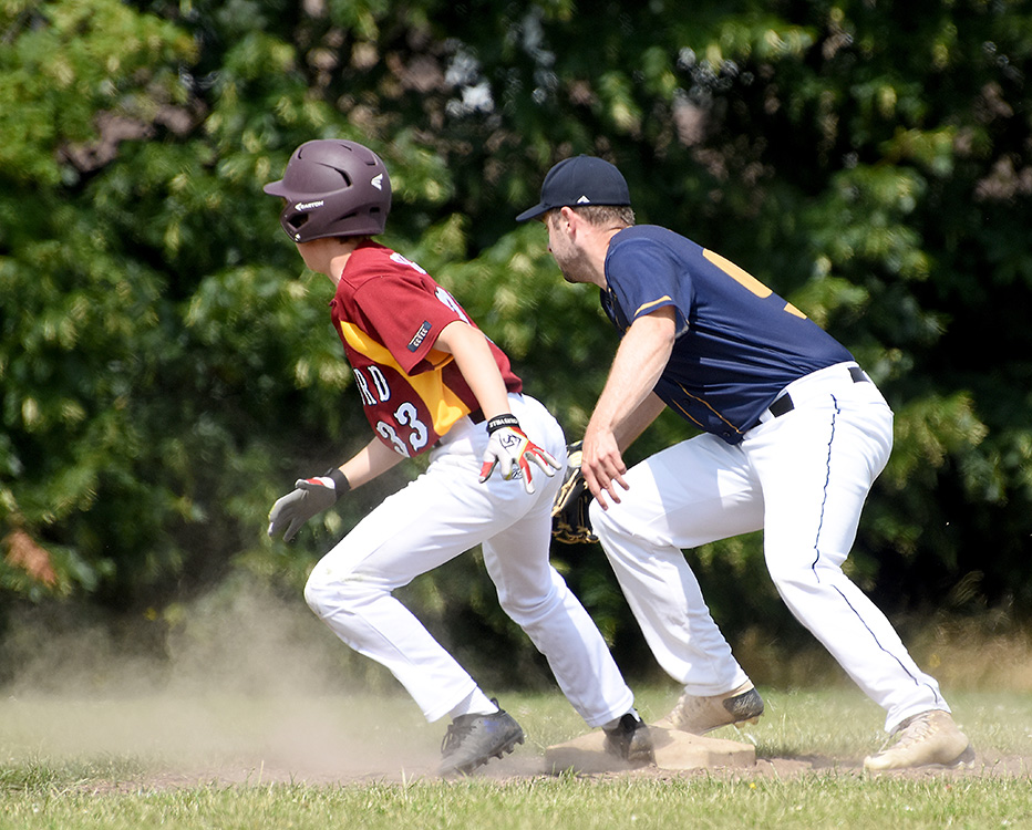 Guildford Majors started the morning with an 8-1 victory over Brighton. Harry and Jack both got singles in the first innings and jack winds up_2193both reached home leading Guildford to an early lead. Jack pitched and the Majors got 3 quick outs thanks to an easy catch at 1st base by Owen to seal the final out. The second innings showed off the Majors batting skills with both Owen and Jack hitting triples with huge hits into the outfield and Jack also driving in 2RBIs for the team. After Brighton scored a home run in their second innings, Jack threw 9 consecutive strikes leaving the Majors 5-1 in the lead. Aidan’s huge hit into left field bagged him 2RBIs in the third innings and gave the Majors a 7-1 lead. Brighton failed to score as their runner was tagged at 3rd by Harvey. The Majors were 8-1 in the lead going into the final innings and stayed this way thanks to an awesome double play by Aidan in the outfield with a running catch and then a sprint to 2nd to tag the runner out.